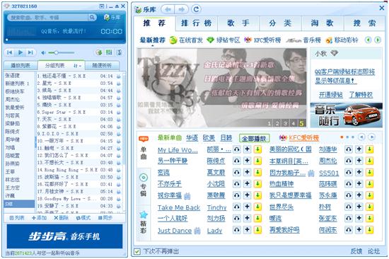 不过 QQ 的列表设计也不是很完美的。前面说过,我们听音乐的几种状态, QQ 就有相应的三种列表:“播放列表”、“分组列表”和“随便听听”, “分组列表”是按照自己的习惯设定分组,相当于自己的 CD 柜吧,“随便听听”更好理解,就相当于你没事的时候开个收音机,随便它播什么音乐吧,但是“播放列表”比较难理解,可以勉强理解为相当于前面说的 miniplayer 的方式。